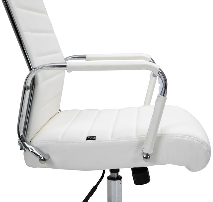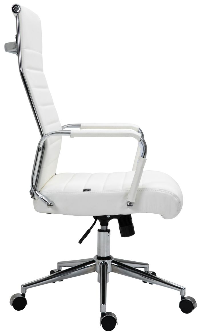 Dieser exklusive Bürostuhl Kolumbus überzeugt nicht nur mit seinem modernen Look, auch in Sachen Komfort kann ihm keiner etwas vormachen. Seine hochwertige Polsterung sorgt für ein angenehmes Sitzgefühl über mehrere Stunden hinweg. Für den Bezug des Sitzes und der Rückenlehne wurde hochwertiges Rindsleder verwendet. Auf der Rück- und Unterseite befindet sich ein pflegeleichter Kunstlederbezug. Die Sitzhöhe ist stufenlos verstellbar und garantiert ein ergonomisches Sitzen. Des Weiteren ist der Schreibtischstuhl mit einem Wippmechanismus versehen, der für mehr Bewegungsfreiheit sorgt. Die Stabilität ist durch das Metallgestell in Chromoptik gewährleistet. Durch die fünf Leichtlaufrollen kann man leicht und locker über den Boden rollen – egal ob auf Hart- oder Teppichböden.
