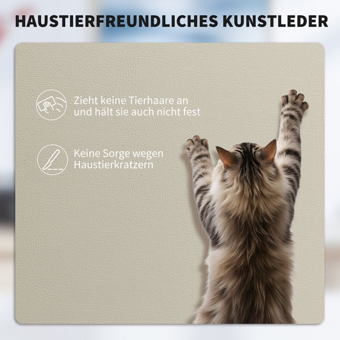 - Material: Tierfreundliches Kunstleder (60% Polyurethan, 40% Polyester), Schaumstoff, Metall, Mehrschichtplatte