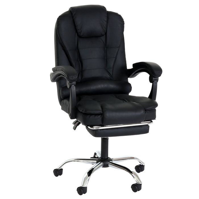 - Durch die angenehme weiche Polsterung ist dieser Drehstuhl äusserst komfortabel und bequem. Mit der ausziehbaren Fussstütze ist ein entspanntes Liegen möglich.