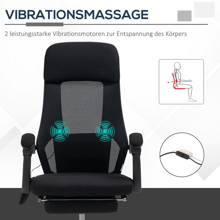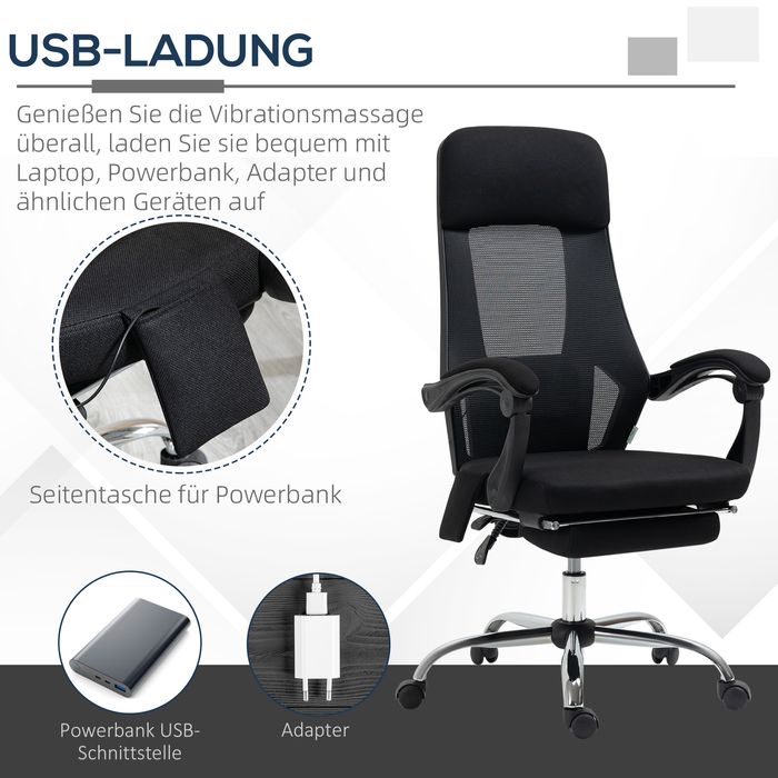 Bürostuhl, Massagefunktion, 2 Vibrationspunkten, Liegefunktion, Fussstütze, USB-Schnittstelle, Mesh-Gewebe