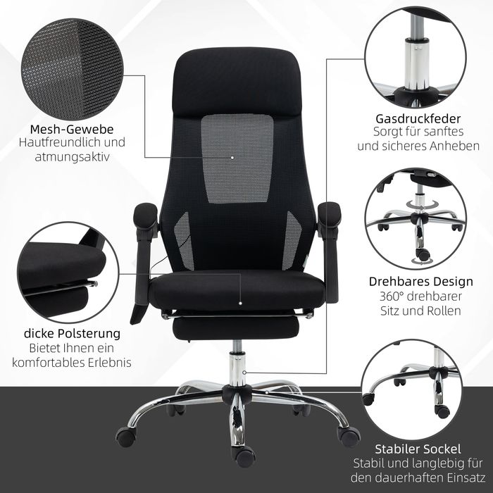 - Zurücklehnen bis zu 135 Grad, mit einer einziehbarer Fussstütze für mehr Komfort