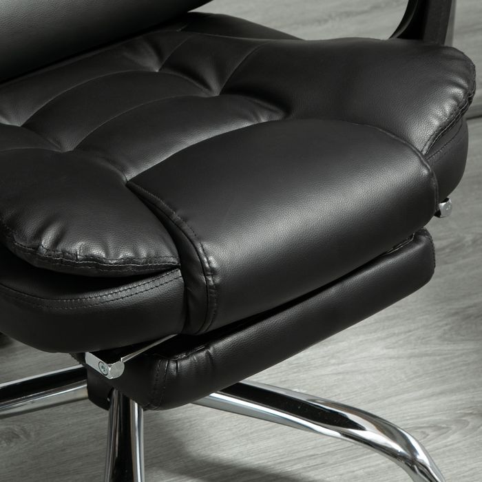 Probieren Sie diesen Bürostuhl von HOMCOM aus, er bietet viel Komfort und Mobilität während der Arbeit. Die Höhe ist zwischen 109 und 117 cm verstellbar, sodass Sie die für Sie optimale Arbeitshöhe einstellen können. Er verfügt über eine ausziehbare Fussstütze, sodass Sie Ihre Beine ausruhen können, wann immer sie wollen. Die hohe Rückenlehne und die Armlehnen stützen Ihren Körper, und die dicke Polsterung sorgt für viel Gemütlichkeit. Komfort und Funktionalität sind wichtig, und HOMCOM weiss, wie man das macht.
