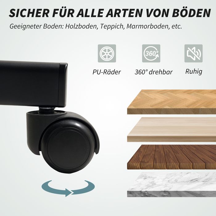 - ✔ 360° Drehbarkeit und Kunstleder-Räder des Chefsessels sorgen für sanfte Bewegungen auf jedem Boden