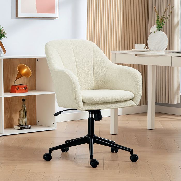 Bürostuhl mit Stoffbezug in Samtoptik, Schminkstuhl mit gewölbter Rückenlehne, für Schlafzimmer, Wohnzimmer, Beige