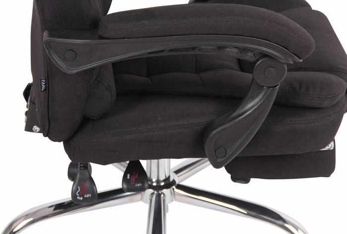 Gemütlichkeit ist mit dem Bürostuhl Oxygen im klassischen Look angesagt. Eine hochwertige Polsterung und ein pflegeleichter Bezug sorgen für ein komfortables Sitzgefühl, welches auch bei längerem Verweilen bestehen bleibt. Die leicht verstellbare Fussstütze und Rückenlehne sorgen zusätzlich für eine angenehme Pause zwischendurch, bei der sich entspannt zurückgelehnt werden darf und die Beine hochgelegt werden können. Dank der stufenlos verstellbaren Sitzhöhe garantiert der Schreibtischstuhl zudem jederzeit ein ergonomisches Sitzen. Dabei steht er standsicher auf fünf Leichtlaufrollen und einem Gestell aus Metall in Chromoptik. Egal ob Hart- oder Teppichböden - man kann immer leicht und locker über den Boden rollen.