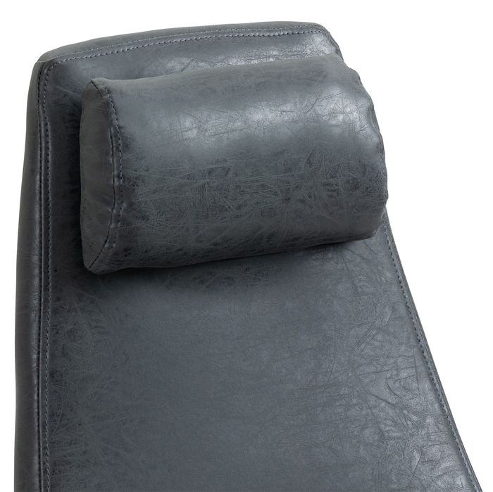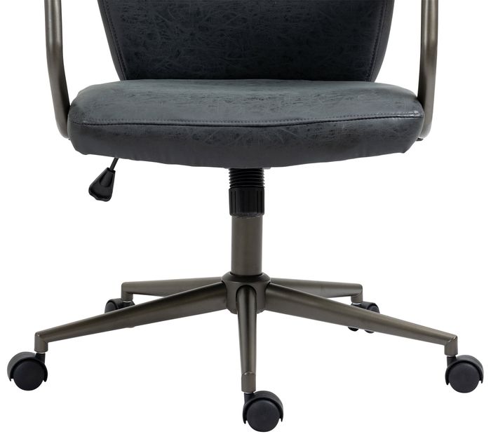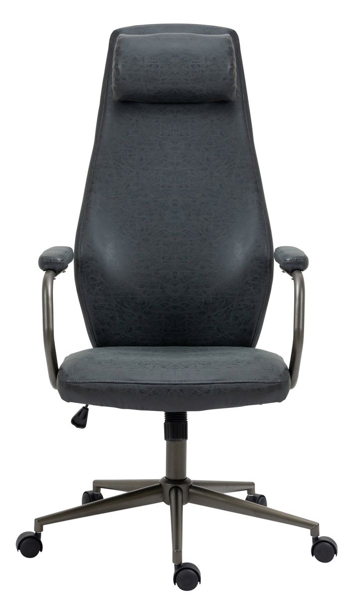 Dieser formschöne Schreibtischstuhl überzeugt nicht nur mit seinem ausgeprägten Industrie-Look, auch in Sachen Komfort kann diesem Bürosessel keiner etwas vormachen. Der strapazierfähige Kunstlederbezug und seine hochwertige Polsterung sorgen für ein angenehmes Sitzgefühl über mehrere Stunden hinweg. Die hohe Rückenlehne hat eine ansprechende Form und die Sitzhöhe des Stuhls ist stufenlos verstellbar und garantiert ein ergonomisches Sitzen. Des Weiteren ist der Bürostuhl mit einem Wippmechanismus ausgestattet, der für mehr Bewegungsfreiheit sorgt. Die Stabilität ist durch das Metallgestell in Schwarz gewährleistet. Durch die fünf Leichtlaufrollen kann man leicht und locker über den Boden rollen – egal ob auf Hart- oder Teppichböden.