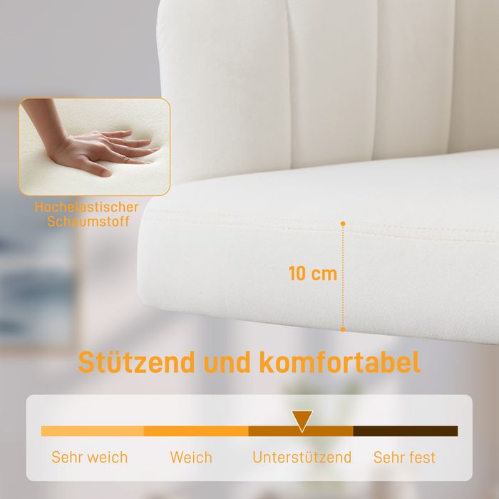 Bürostuhl, Samtoptik, höhenverstellbar, rollbar, Stahlbasis, Cremeweiss