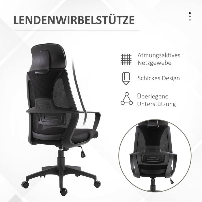 Bürostuhl, Wippfunktion, mit Kopfstütze, Lendenstütze Schwarz