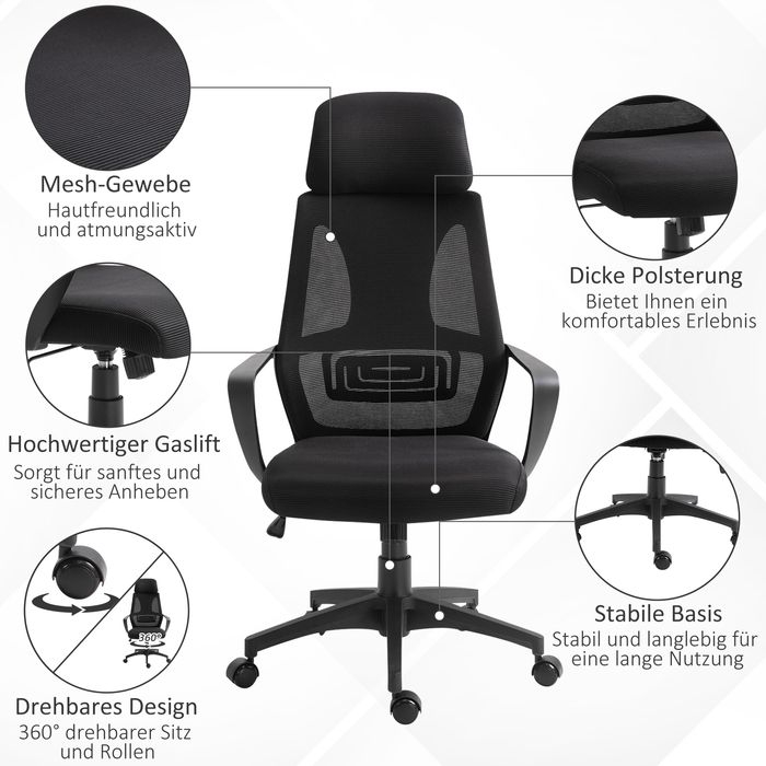 Wenn Sie lange im Büro sind, brauchen Sie einen robusten Bürostuhl - ideal beim Lernen für Prüfungen oder bei grossen Projekten. Der Schreibtischstuhl von Vinsetto bietet mit seiner dicken, entspannenden Polsterung und Verstellbarkeit mehr als nur Standard. Vinsetto steht für Komfort und Funktionalität in einem Bürostuhl.