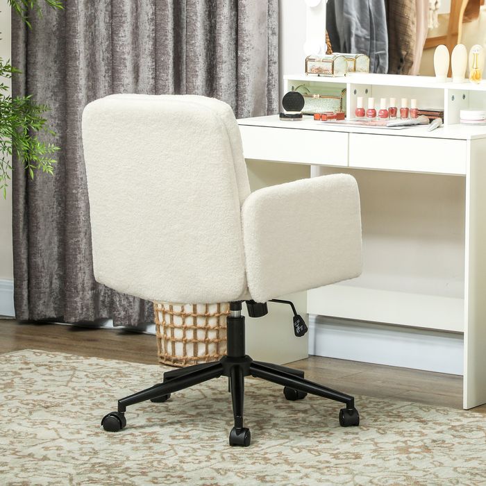 Fahrbarer Bürostuhl mit Stoffbezug, Armlehne, 5 Räder, drehbar, Cremeweiss