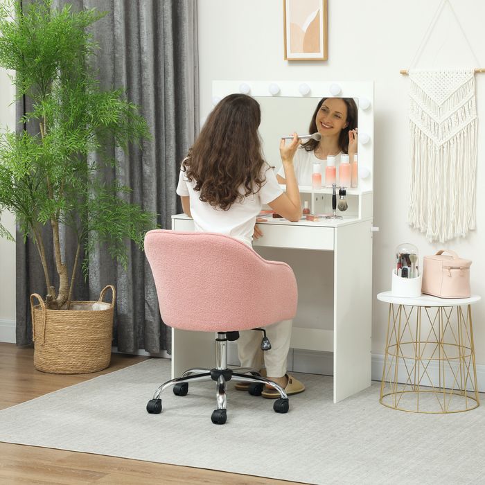 Homeoffice Stuhl, Ergonomisch Schreibtischstuhl mit Wippfunktion, Teddysamtoptik 56 x 61 x 86 cm Rosa
