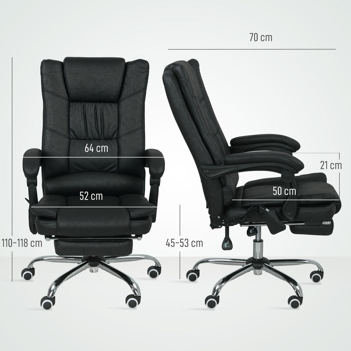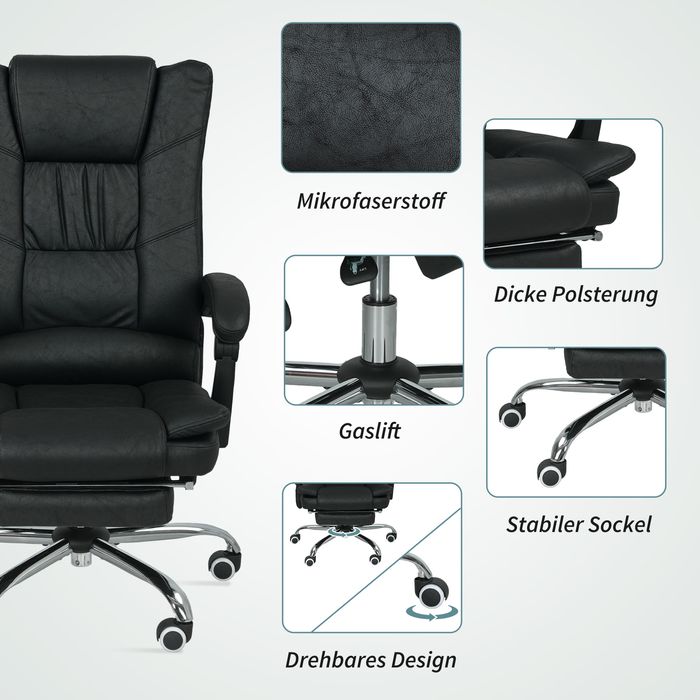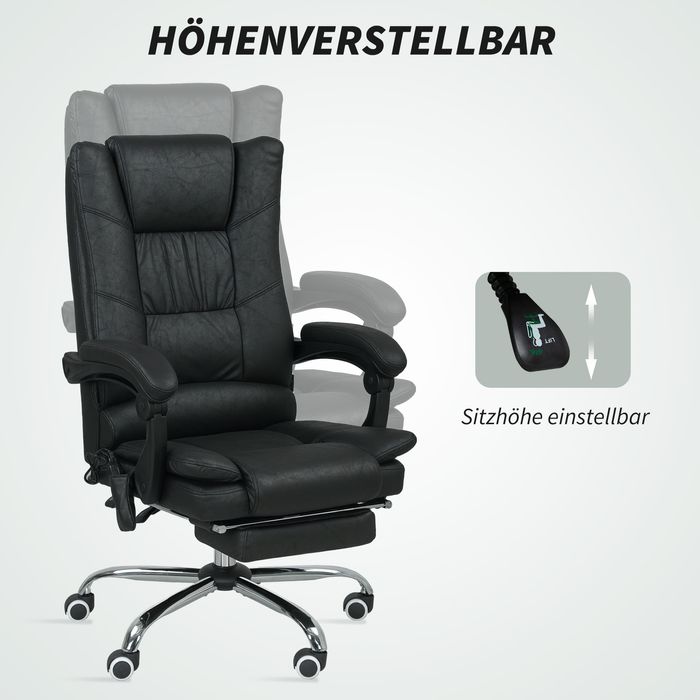 Massagstuhl Bürostuhl mit Massagefunktion, inkl. Fussstütze, höhenverstellbar, 64 cm x 70 cm x 118 cm, Schwarz