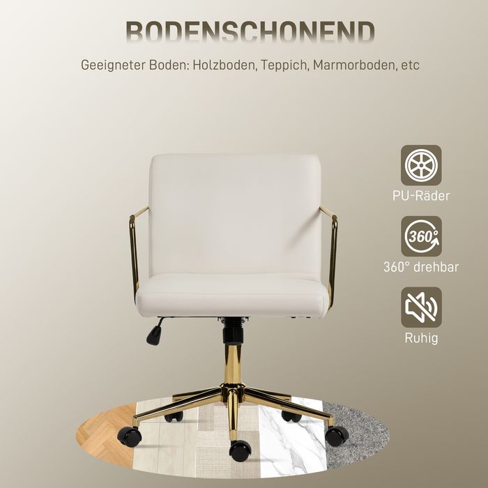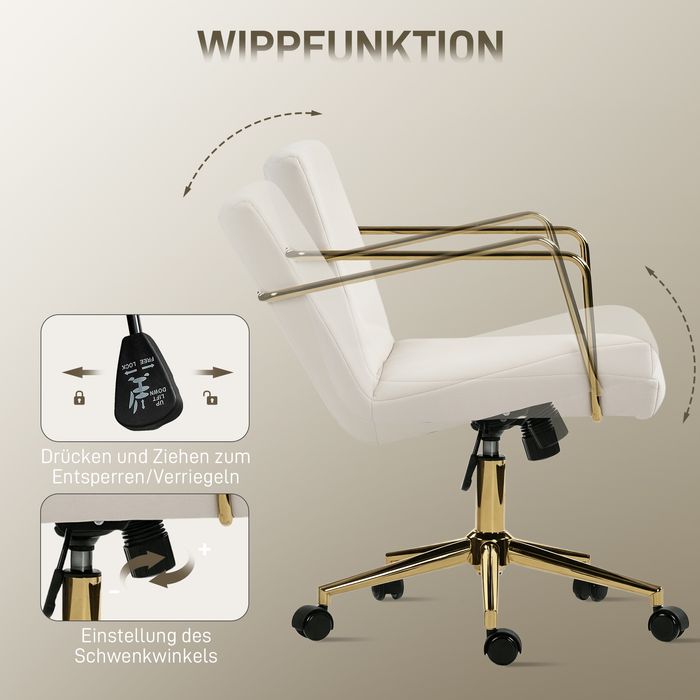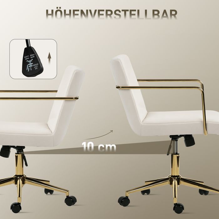 - Moderne Ästhetik: Ausgestattet mit vergoldeten Armlehnen und bezogen mit einem cremeweißen Stoff, bringt dieser Schreibtischstuhl moderne Eleganz und luxuriösen Stil in Ihr Büro und wird zum ausdrucksstarken Blickfang