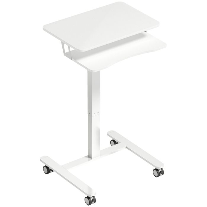 Höhenverstellbarer Stehschreibtisch, Rollen, Stahlrahmen, Weiss