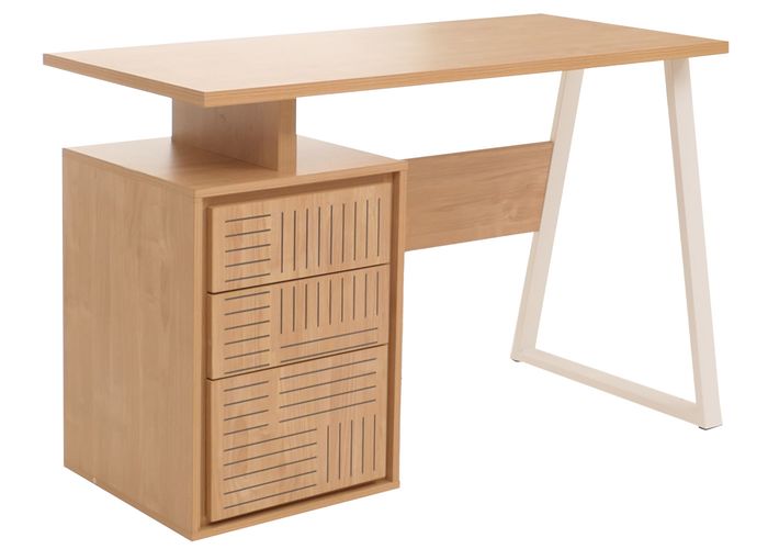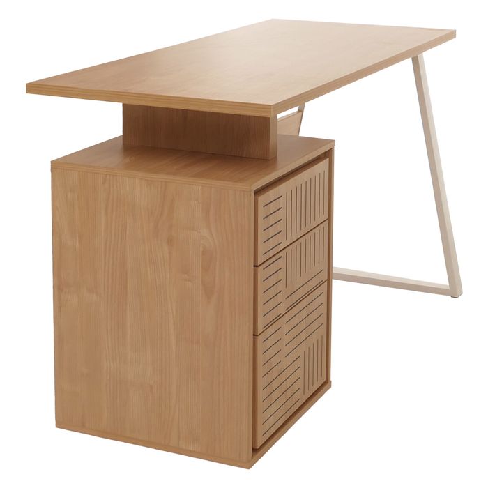 - Dieser Arbeitstisch bietet viel Platz zum Arbeiten und besitzt drei Schubladen sowie genügend Ablagefläche, um beispielsweise Schreibutensilien und Unterlagen zu verstauen. So haben Sie wichtige Schriftstücke und Dokumente immer griffbereit.