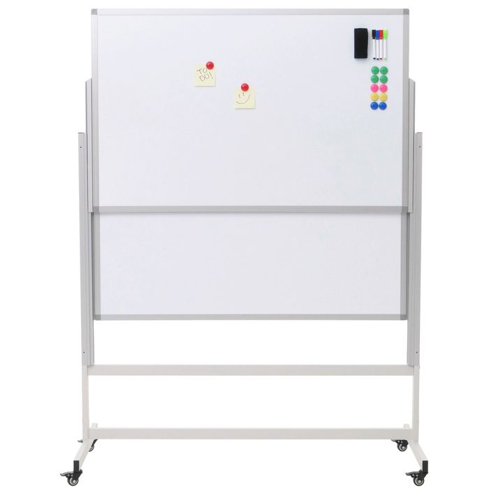 Whiteboard HWC-L87, Magnettafel, zwei Tafeln beidseitig beschreibbar höhenverstellbar rollbar inkl. Zubehör 101x69cm
