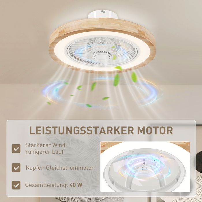 - Natürlicher Look: Dieser Deckenventilator mit Beleuchtung und einer Abdeckung aus Eichenholz fügt jedem Raum natürliche Eleganz hinzu. Das schlanke und moderne Design harmoniert mit verschiedenen Einrichtungsstilen