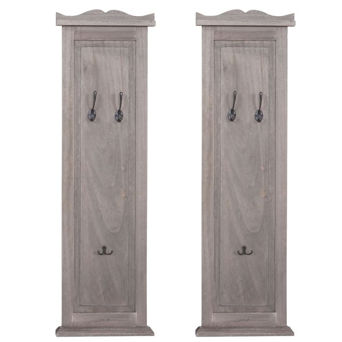 2er-Set Garderobe T33, Wandgarderobe Garderobenpaneel, Wandhaken Holz 109x28x4cm - grau-braun shabby