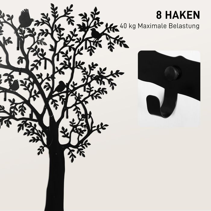 Wandgarderobe, Wandmontierter Mantelhaken, Baumdesign mit Vögeln, Schwarz