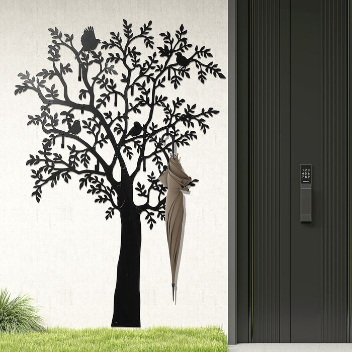 - Bauminspirierte Eleganz: Holen Sie die sanfte Schönheit der Natur in Ihre eigenen vier Wände. Diese künstlerisch gestaltete Wandgarderobe mit vier Vögeln bringt einen frischen und eleganten Akzent in Ihre Raumgestaltung.