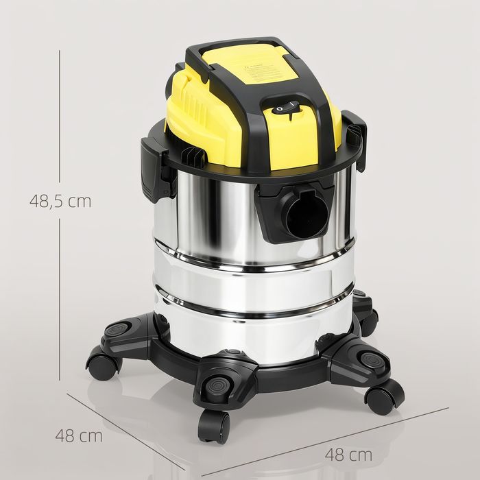 - 20L Metallstaubbehälter: Dieser robuste Staubbehälter aus Edelstahl ist stoss- und korrosionsbeständig. Mit einem Fassungsvermögen von 20L hält der Industriestaubsauger mehr Schmutz und Flüssigkeiten, was die Reinigung grosser Bereiche ohne häufiges Entleeren ermöglicht.