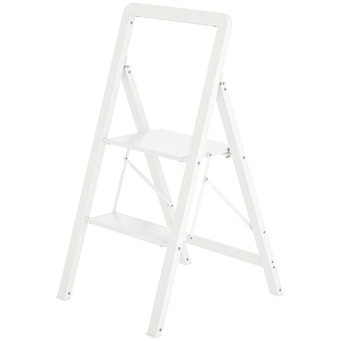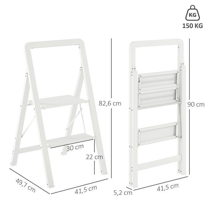 2-stufige Trittleiter, Aluminum faltbar, rutschfeste Plattform, Weiss