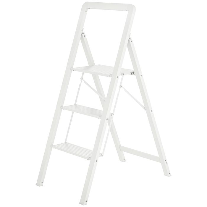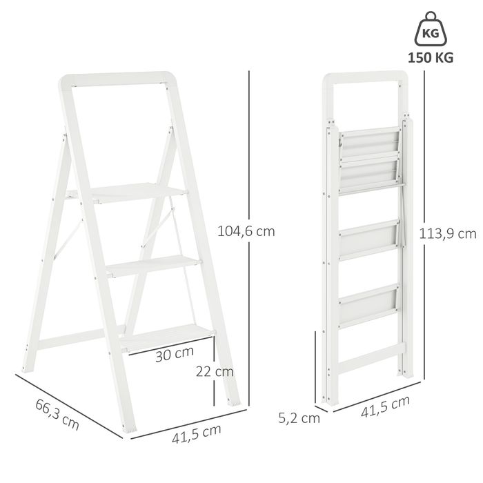 3-stufige Trittleiter, Aluminum faltbar, rutschfeste Plattform, Weiss