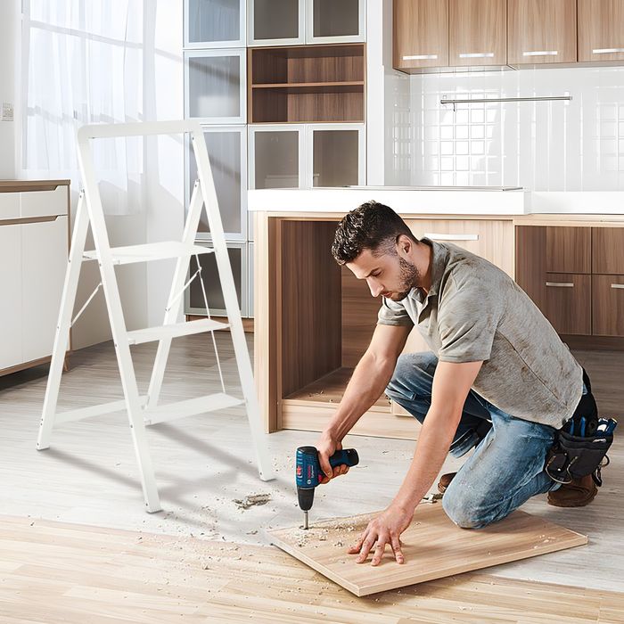 - Leichte Tragbarkeit: Diese kompakte zweistufige Leiter ermöglicht einfaches Erreichen hoher Regale und schwer zugänglicher Bereiche, ideal für Dekoration und Reinigung in Haus und Garten.