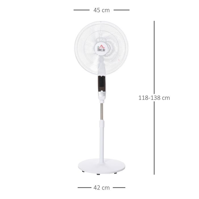 Standventilator 138 cm Ventilator mit 5h Timer Fernbedienung höhenverstellbarer Lüfter mit 3 Geschwindigkeitsstufen Stahl Weiss
