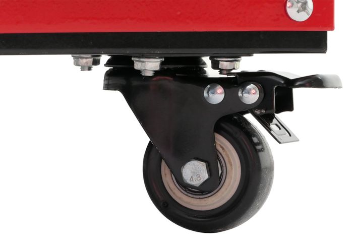 Die Werkzeughalterungen sorgen dafür, dass Ihre Werkzeuge sicher und ordentlich verstaut sind. Der stabile Handgriff und die leichtgängigen Rollen machen den Wagen besonders mobil und wendig, sodass Sie ihn mühelos durch Ihre Werkstatt bewegen können. Die Rollen sind mit Feststellbremsen ausgestattet, die den Wagen bei Bedarf sicher an Ort und Stelle halten. Egal, ob Sie schweres Werkzeug oder empfindliche Geräte transportieren – dieser Werkstattwagen hält stand. Die intelligente Kombination aus Funktionalität und Flexibilität macht den Werkzeugwagen M26 zu einem unverzichtbaren Helfer in jeder Werkstatt.