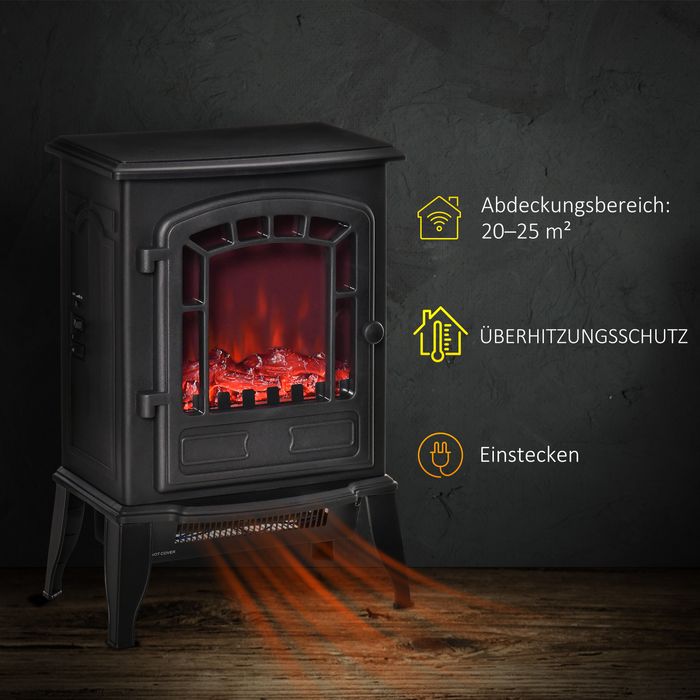 Erzeugen Sie ohne einen traditionellen Kamin eine warme, einladende Atmosphäre in Ihrem Zuhause. Der elektrische Kamin von HOMCOM macht es möglich! Sein Flammeneffekt fügt eine dekorative Note hinzu, und mit der Heizfunktion gestalten Sie Ihre Räume stilvoll und behaglich. Mit zwei Wärmestufen passen Sie die Temperatur an Ihre Wünsche an und heizen Räume bis 25m². Modern und sicher mit Überhitzungsschutz, ist dieser Kamin die ideale Ergänzung für Ihr Heim.