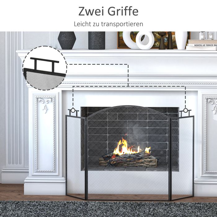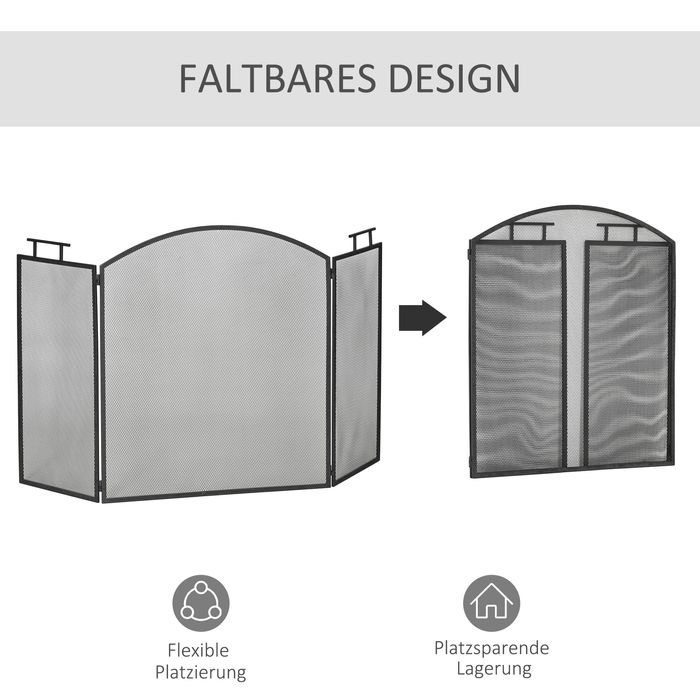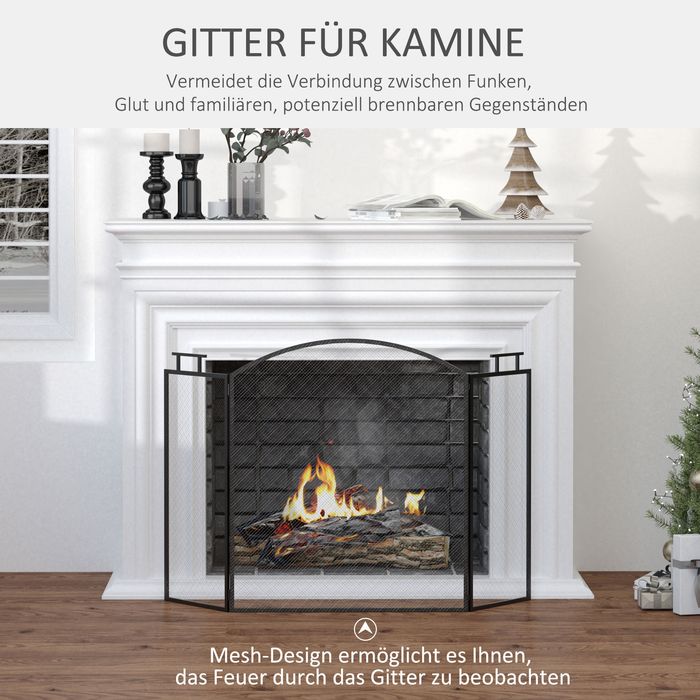 Kaminschutzgitter Funkenschutzgitter mit Netz Eisengitter Kaminschirm zusammengefaltet dreiteilige Design Metall Schwarz 128 x 2 x 76,5 cm