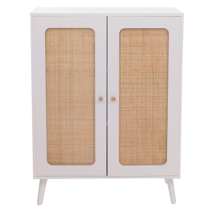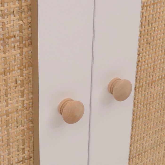Highboard HWC-M38, Kubu Rattan Holz 106x80x41cm – weiss