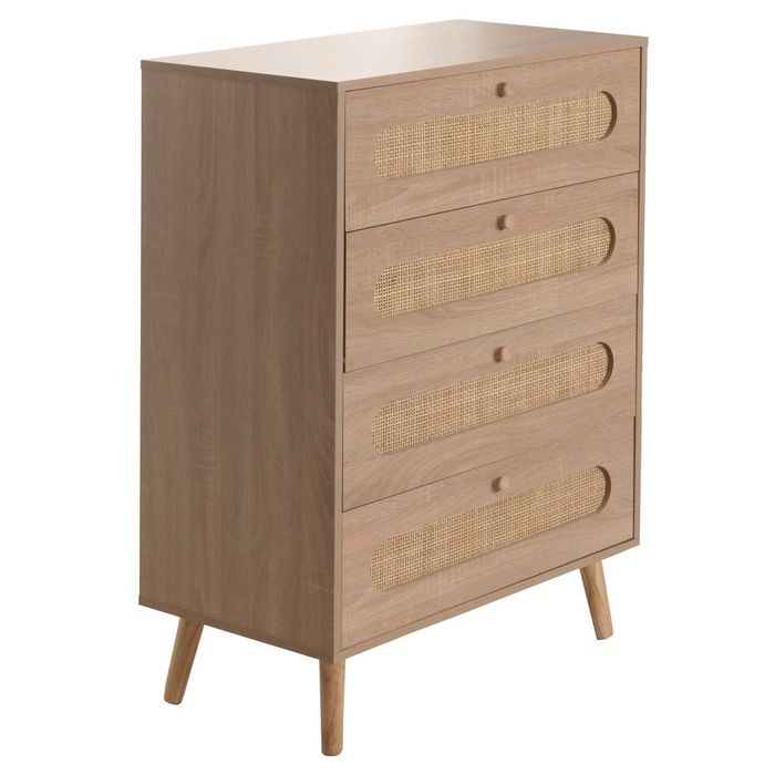 - Mit ihren vier Schubladen bietet die Kommode reichlich Platz für all Ihre Essentials, von Kleidung und Accessoires bis hin zu Büchern und anderen Haushaltsgegenständen. Der grosszügige Stauraum hilft Ihnen, Ordnung zu halten und alles griffbereit zu haben.