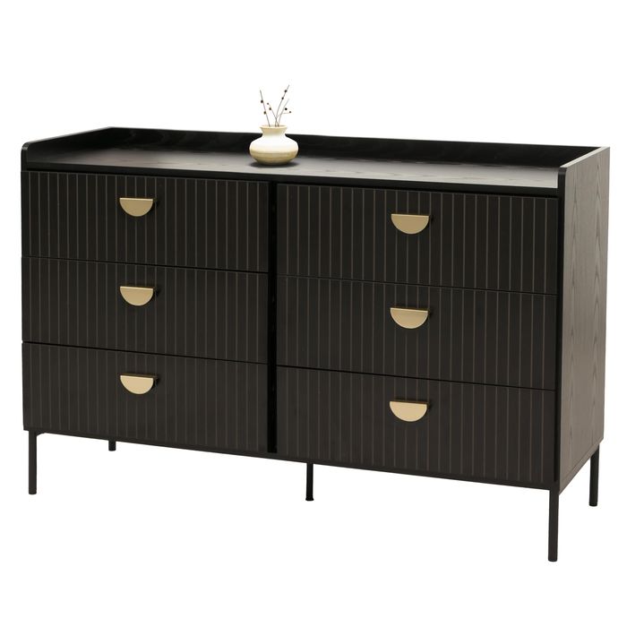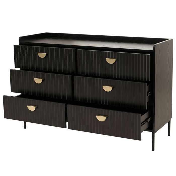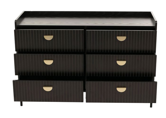 - Die Kommode bietet mit ihren sechs geräumigen Schubladen ausreichend Platz für Ihre Utensilien. Diese sind ideal, um alles von Büchern über Geschirr bis hin zu Multimedia-Zubehör stilvoll und geordnet aufzubewahren.