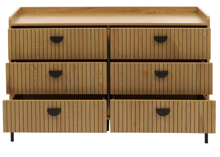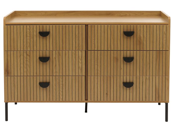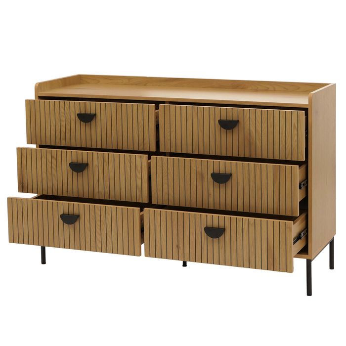 - Die Kommode bietet mit ihren sechs geräumigen Schubladen ausreichend Platz für Ihre Utensilien. Diese sind ideal, um alles von Büchern über Geschirr bis hin zu Multimedia-Zubehör stilvoll und geordnet aufzubewahren.