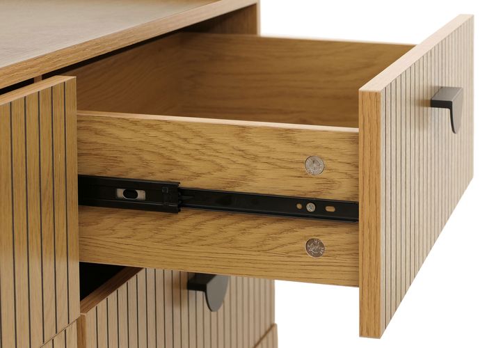 - Die Schubladenfronten im Lamellen-Design verleiht Ihrem Raum eine moderne Note. Ideal kombinierbar mit weiteren Produkten der Serie O39, bietet dieses Highboard Funktionalität, Stil und Qualität in einem Möbelstück.