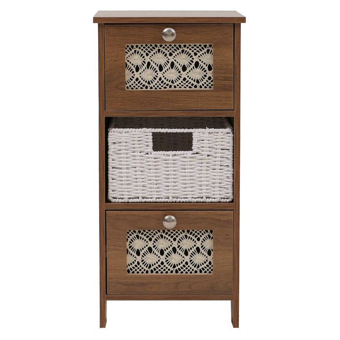 Kommode HWC-O75, 3 Schubfächer Korbschubladen Holz Melamin 63x30x30cm – braun