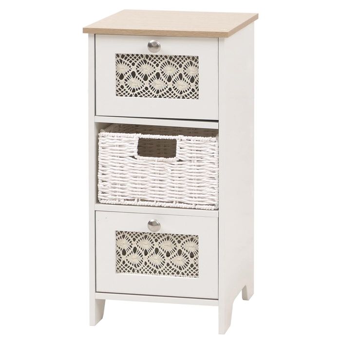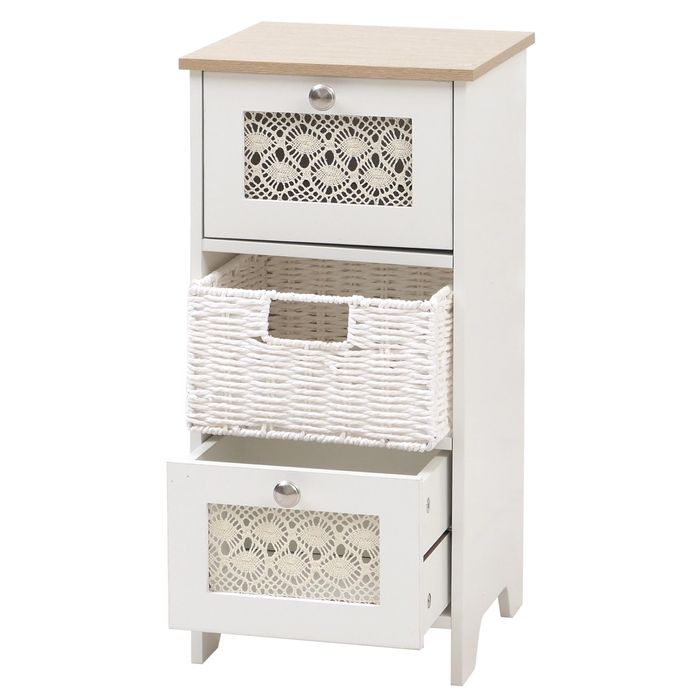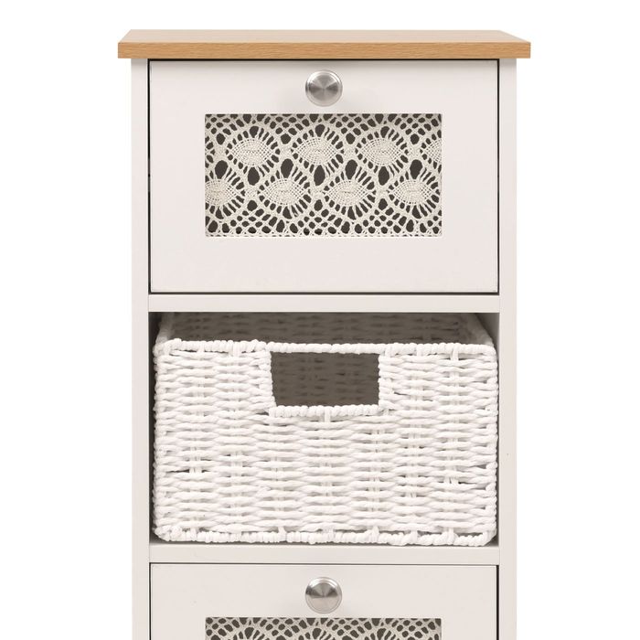 Kommode HWC-O75, 3 Schubfächer Korbschubladen Holz Melamin 63x30x30cm – natur-weiss
