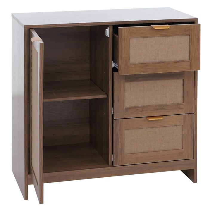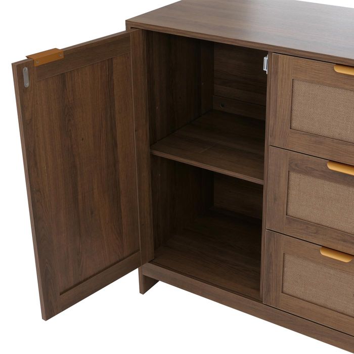 - Die Türe dieses Sideboards ist mit Leinen verziert, was nicht nur einen Hauch von Eleganz und Natürlichkeit verleiht, sondern auch jedes Stück einzigartig macht.