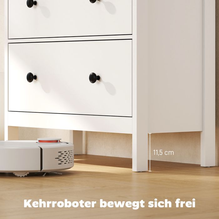 - Stabil & sicher: Mit Anti-Kipp-Bändern zur sicheren Wandbefestigung. Rutschfeste Fusspads der Kommode schützen Ihre Böden und der 11,7 cm hohe Freiraum darunter erleichtert das Reinigen mit Besen oder Staubsauger