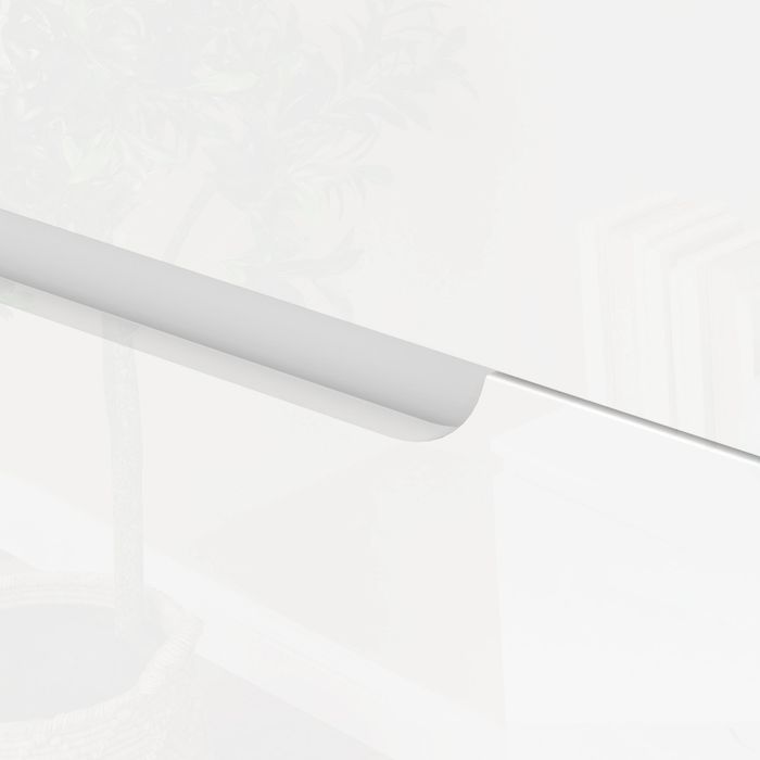 - Schlankes modernes Design: Ausgestattet mit dreiteiligen Stahlschienen und einem elegant versteckten Griff, ermöglichen die Schubladen ein reibungsloses Öffnen und Schliessen. Eine vollständig hochglänzende Oberfläche verleiht der Kommode ein zeitgemässes Aussehen.