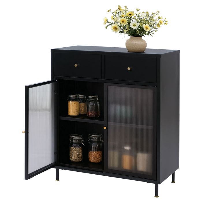Diese Kommode verbindet urbanen Industrial-Charme mit einem modernen, leichten Look und wird so zum vielseitigen Highlight in jedem Zuhause. Der robuste Korpus aus pulverbeschichtetem Stahl sorgt für eine langlebige, formstabile Qualität, die selbst im täglichen Gebrauch zuverlässig bleibt. Die halbtransparenten Türen aus elegantem Schilfglas lassen Licht hindurch, ohne den Blick vollständig freizugeben - perfekt, um den Inhalt stilvoll und gleichzeitig dezent zu präsentieren. Hinter den Türen verbirgt sich grosszügiger Stauraum, der dank höhenverstellbarem Fachboden flexibel an Geschirr, Vorräte oder Deko angepasst werden kann. Zwei praktische Schubladen bieten zusätzlichen Platz für Besteck, Küchenutensilien oder andere Kleinigkeiten, die schnell zur Hand sein sollen.
