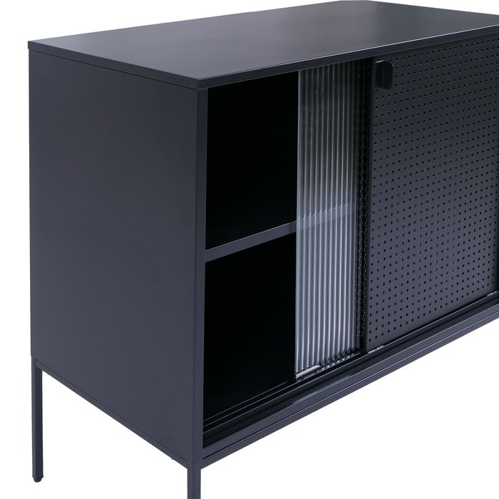 Kommode O90, Industrial Staufächer Schiebetüren Metall 85x80x45cm, schwarz