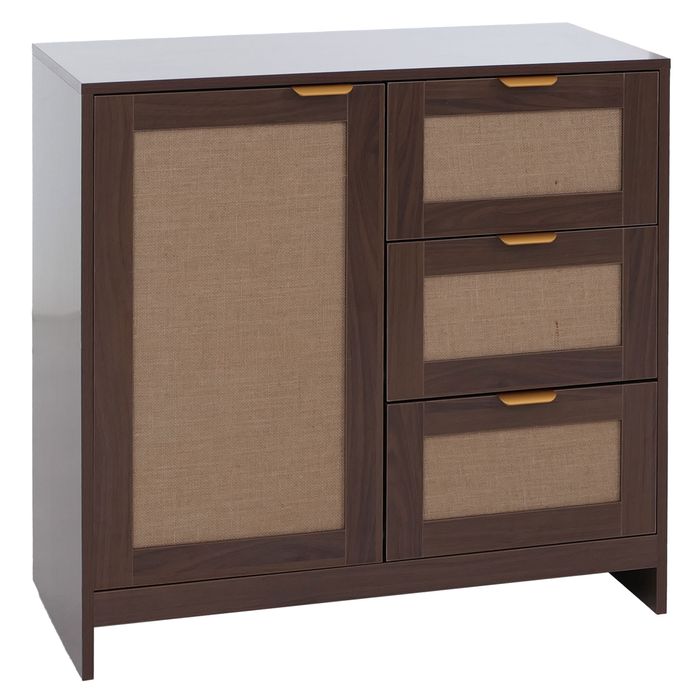 Kommode P50, Sideboard Highboard, Schubladen Staufach, MDF Melamin Leinenfront, Walnuss-Optik