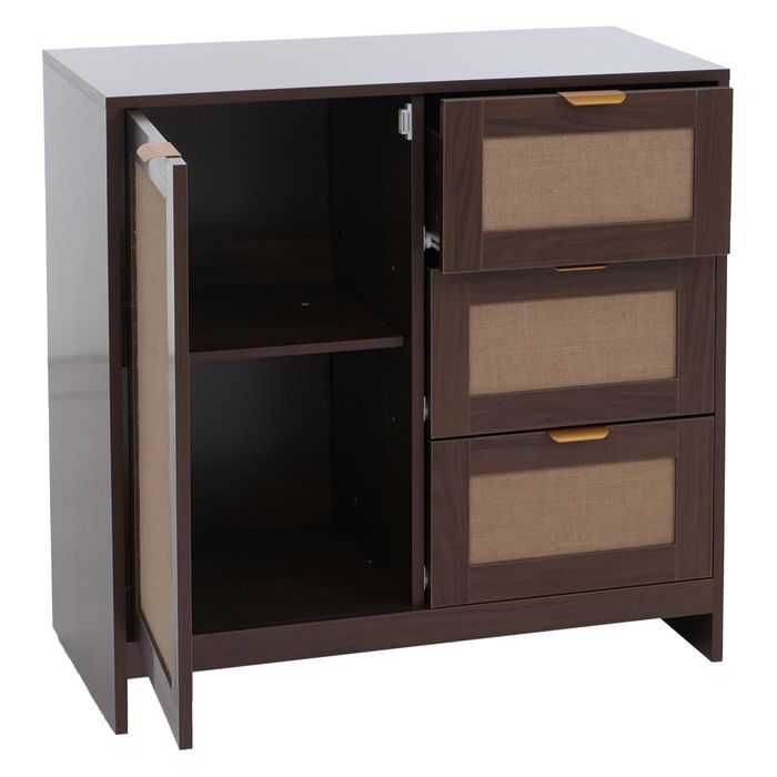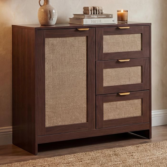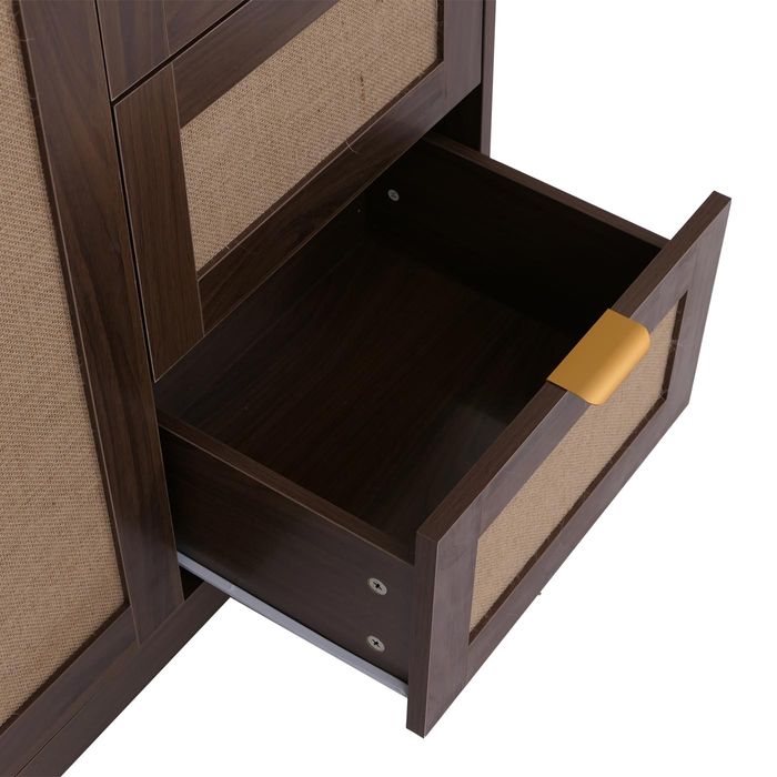 - Die Türe dieses Sideboards ist mit Leinen verziert, was nicht nur einen Hauch von Eleganz und Natürlichkeit verleiht, sondern auch jedes Stück einzigartig macht.