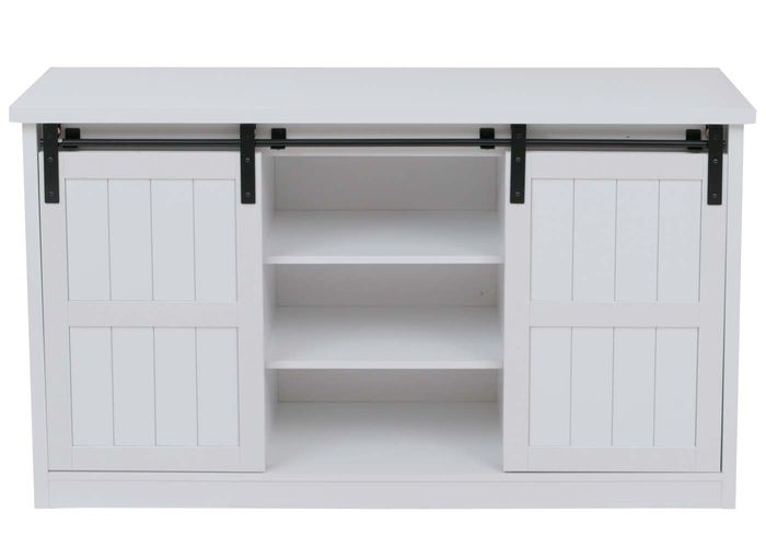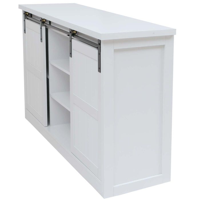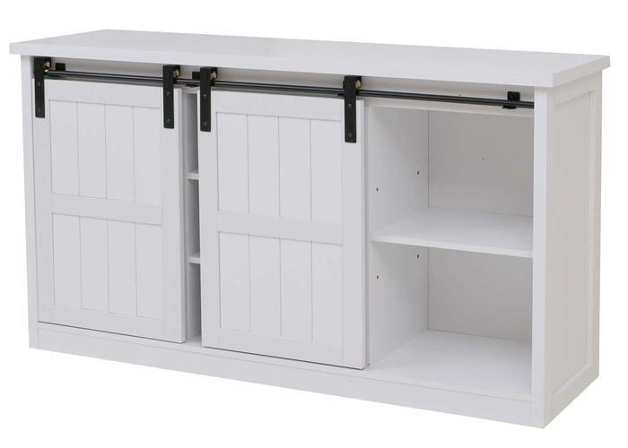 Diese Kommode mit Schiebetüren ist ein praktisches Möbelstück für jedes Zuhause. Durch Ihr zeitloses Design passt der Schrank in viele Einrichtungsstile. Die Schiebetür der Kommode lässt sich individuell auf der Gleitschiene verschieben, was eine flexible Nutzung ermöglicht.