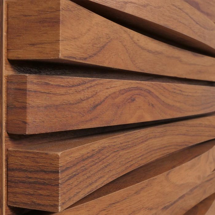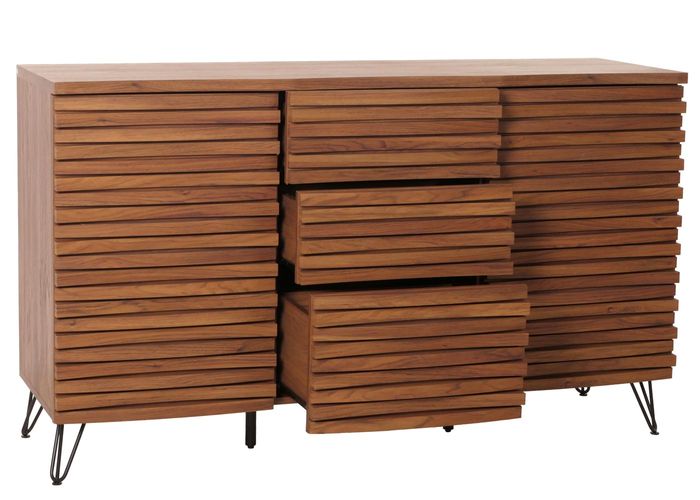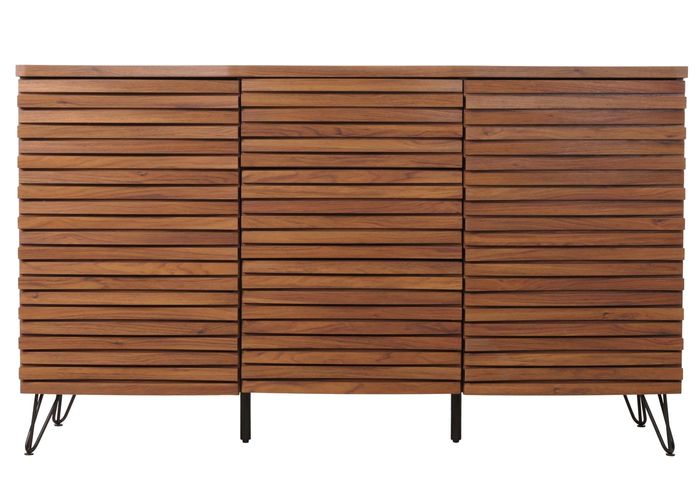 Sideboard HWC-M49, 3D-Design, MDF Metall 85x142x44cm – Walnuss-Optik