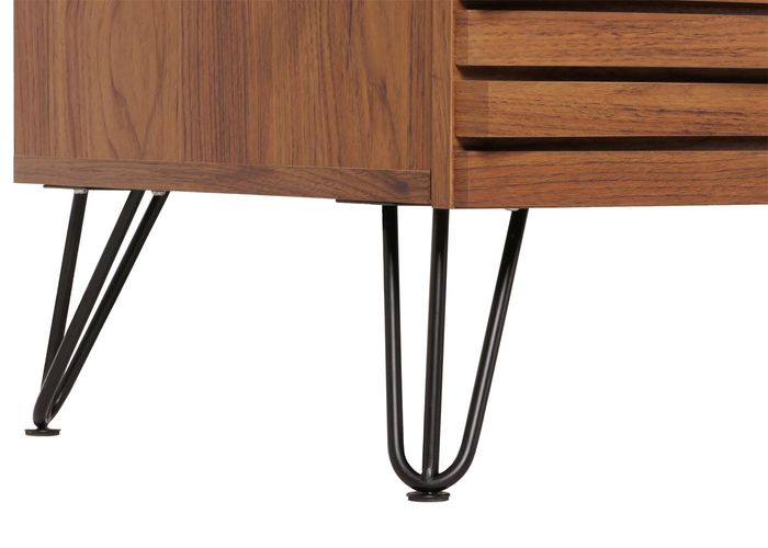 - Die Oberfläche der beiden Türen und der Schubladen präsentieren sich in einem attraktiven, gewölbten Design, das nicht nur ein optischer Hingucker ist, sondern auch das hochwertige Material hervorhebt.