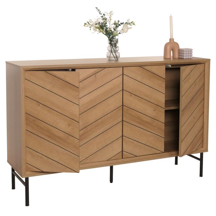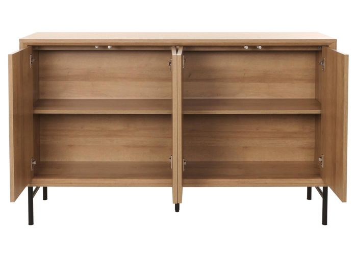 Tauchen Sie ein in die zeitlose Eleganz unseres Sideboards M50. Dank seiner natürlichen Beschaffenheit strahlt es Wärme und Charakter aus, während seine klaren Linien modernes Flair verleihen. Das innovative Push-to-Open-System der Türen vereint Komfort mit Ästhetik, indem es ein nahtloses Öffnen und Schliessen ermöglicht, ohne auf Griffe zurückzugreifen. Mit vier Türen und ebenso vielen verstellbaren Regalböden bietet dieses Sideboard nicht nur ausreichend Platz, sondern auch Flexibilität für Ihre individuellen Bedürfnisse. Organisieren Sie Ihre Habseligkeiten mühelos in den vier Ablagefächern, die für eine geordnete Aufbewahrung sorgen und Ihre Räume aufgeräumt halten. Dank seiner soliden Konstruktion und den stabilen Füssen aus Eisen garantiert dieses Sideboard nicht nur eine ansprechende Ästhetik, sondern auch eine langlebige Funktionalität. Entdecken Sie die Vielseitigkeit und den grosszügigen Stauraum dieses Möbelstücks, das nicht nur Ihren Wohnbereich bereichert, sondern auch Ihre täglichen Routinen vereinfacht.